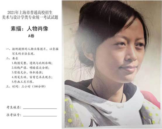 2021上海美術(shù)聯(lián)考素描考題:女學(xué)生頭像(照片)